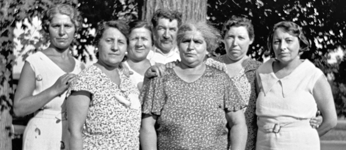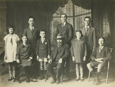 Seated, l to r: Fay Hendler, Tilly Segal, Abraham Isaac Josset, Lottie Josset, Bella Josset, Janie Josset, Ray Wolpert.