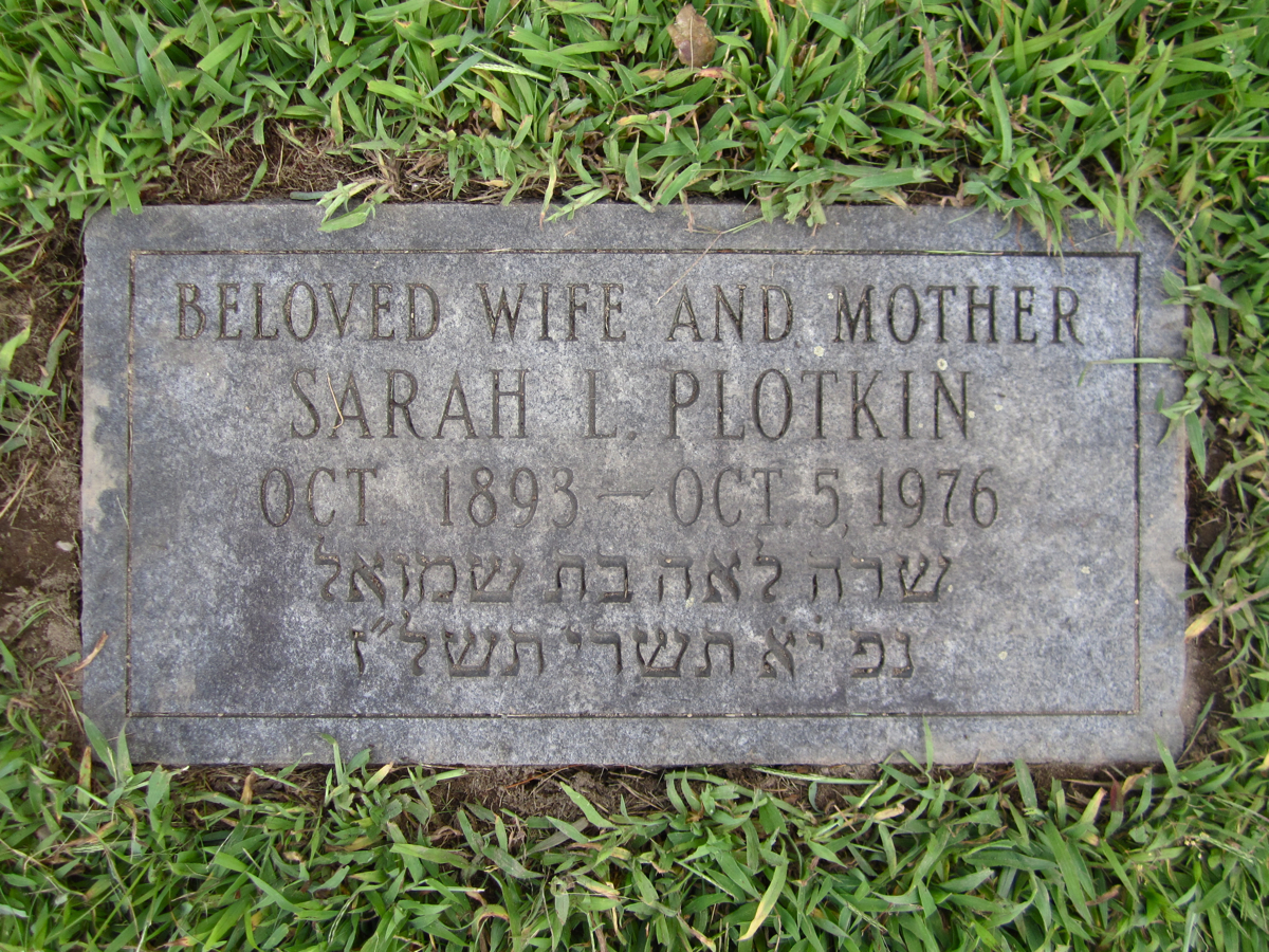 Sarah Plotkin, wife of head of household, female, white, age 42, married, aged 30 at first marriage, has not attended school recently, able to read and write, born in Lithuania, father born in Lithuania, mother born in Lithuania, spoke Jewish before coming to US, immigrated in 1910, is alien, able to speak English, no occupation.